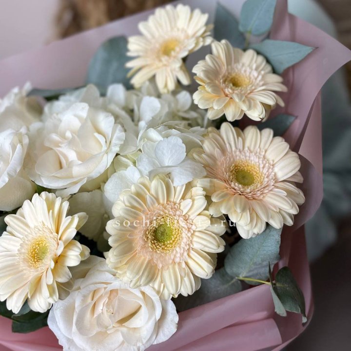 Букет роз, гортензии, гербер