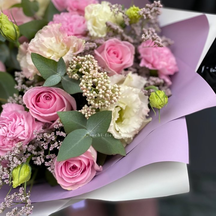 Букет французских роз и эустомы White