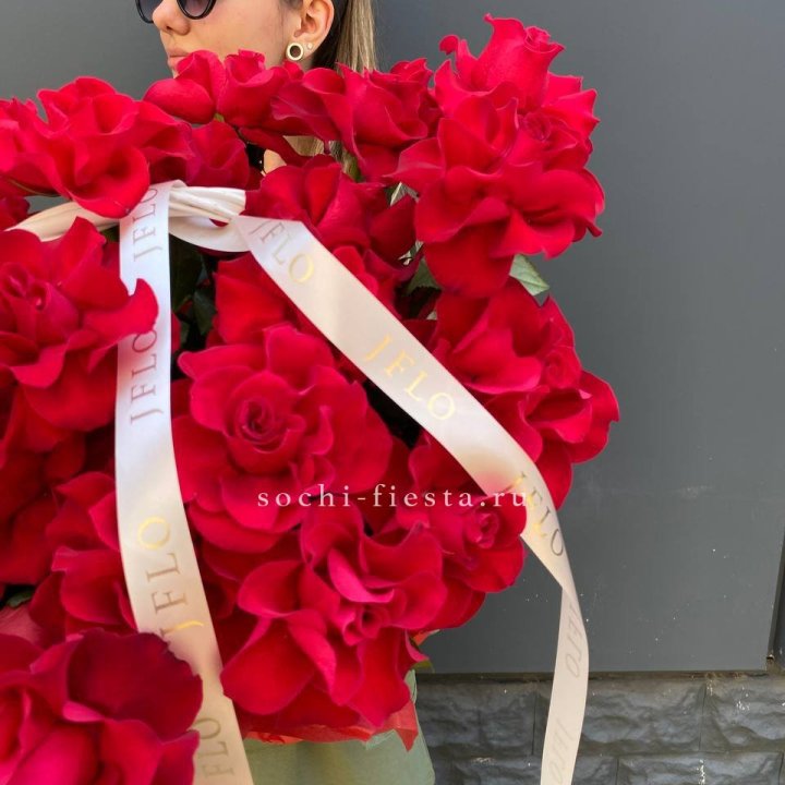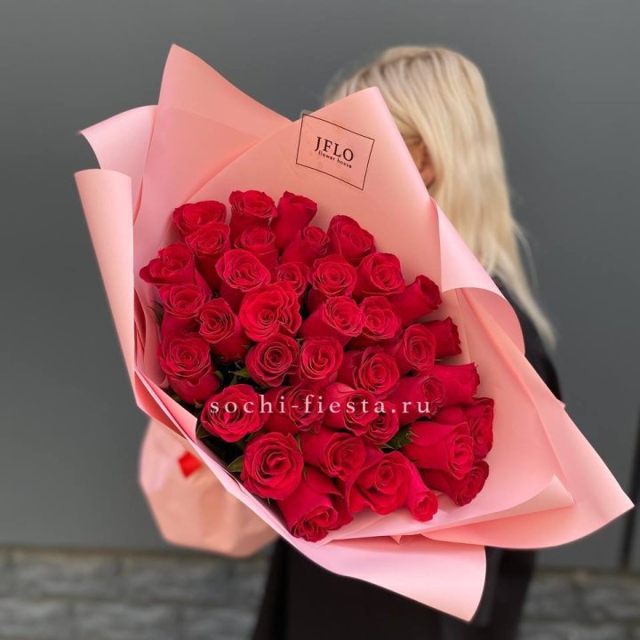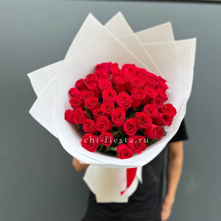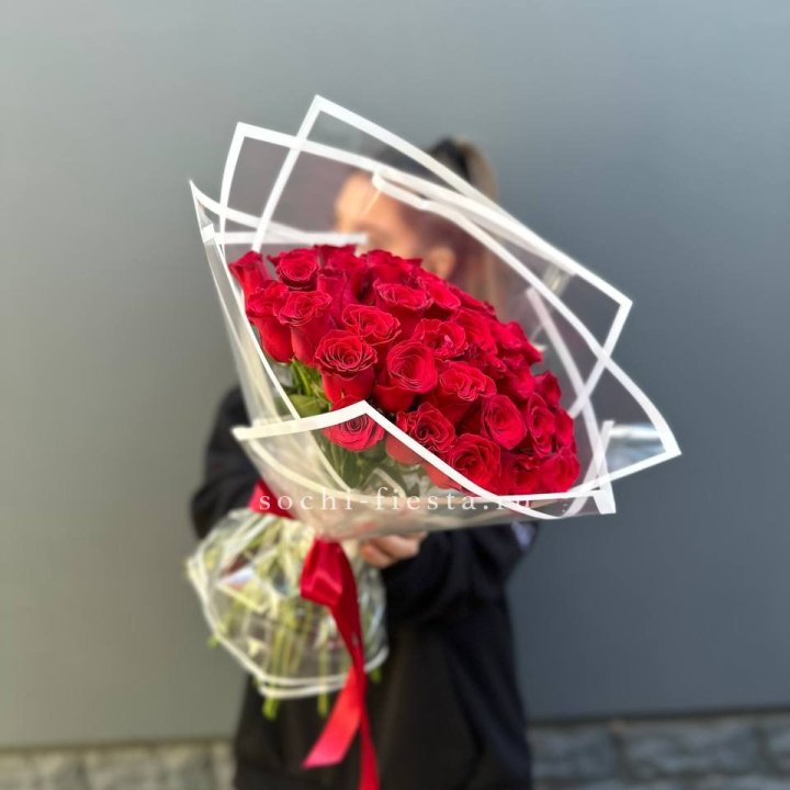 35 красных роз под ленту