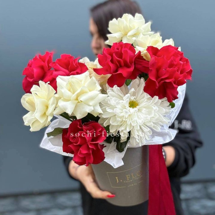 Французские розы с хризантемой в боксе
