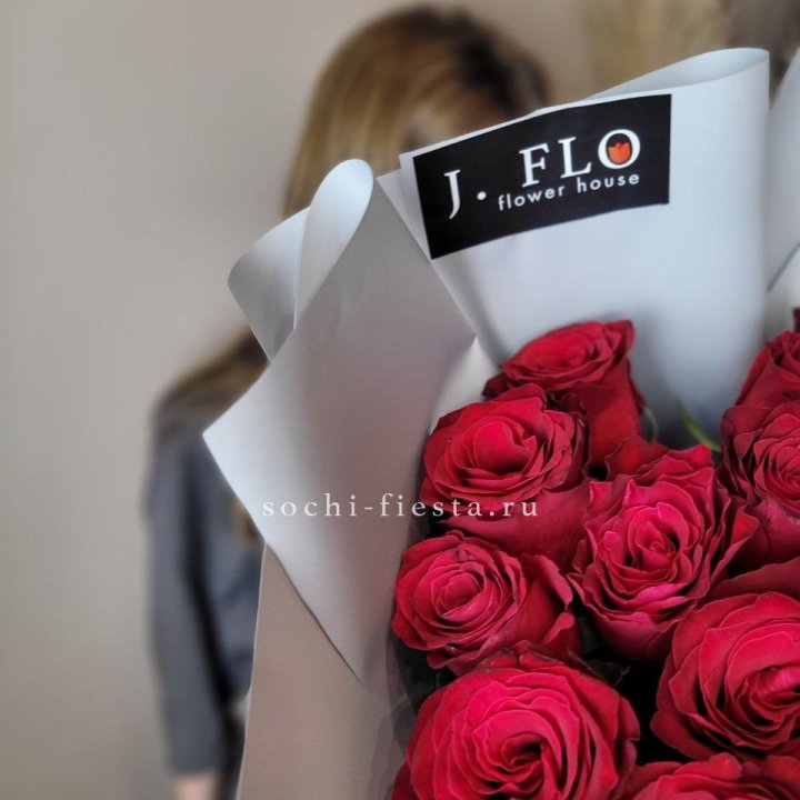 15 красных роз под ленту