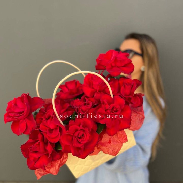 Красные французские розы в корзине