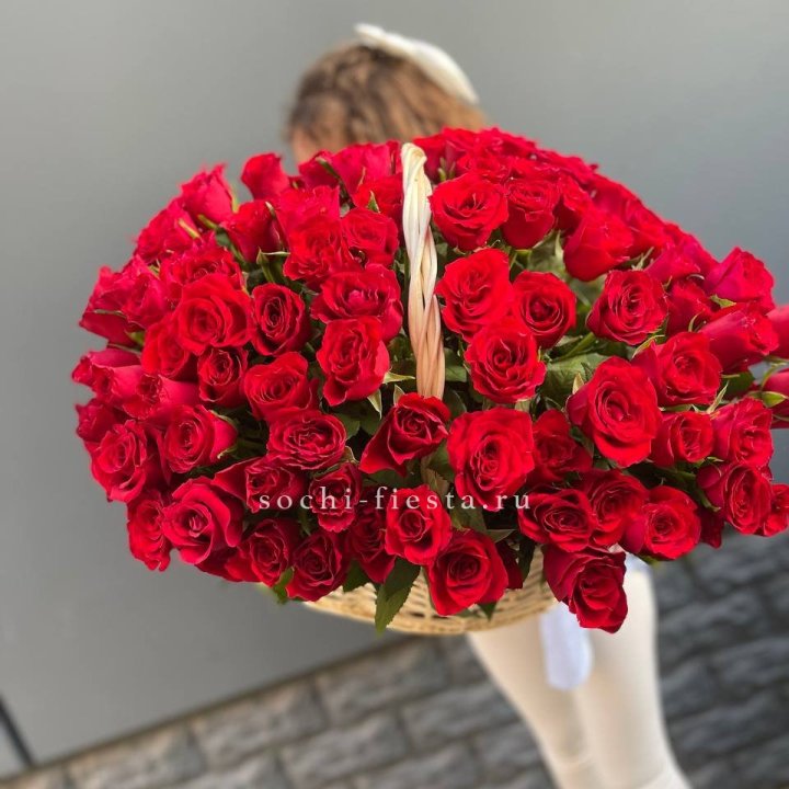121 красная роза в корзине