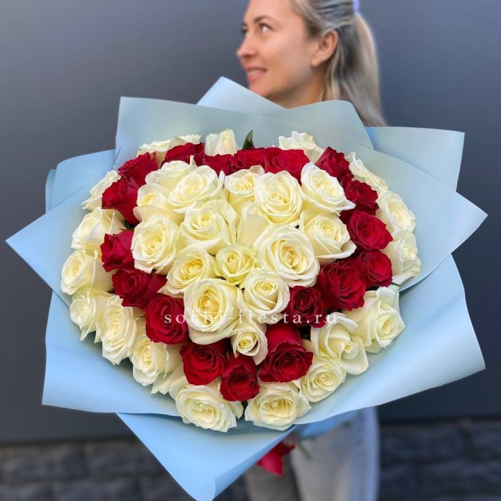 51 красная и белая роза