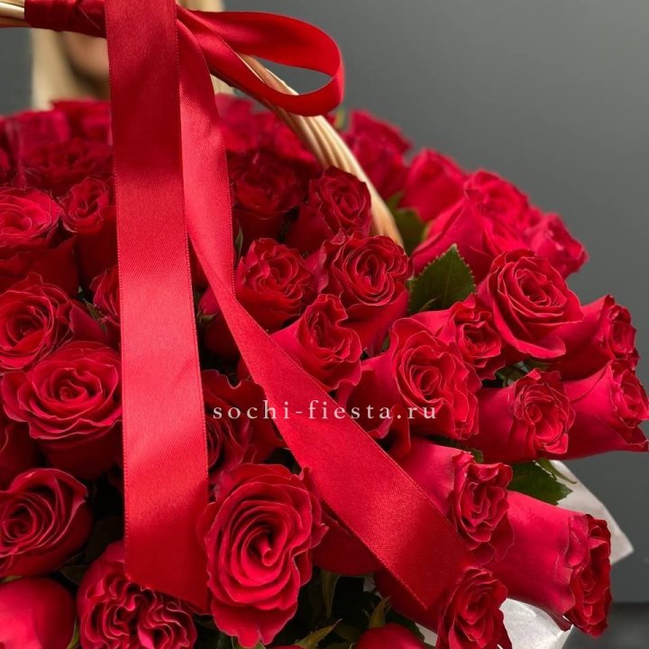 151 красная роза в корзине