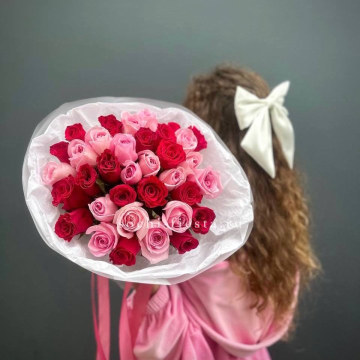 Букет красных и розовых 35 роз