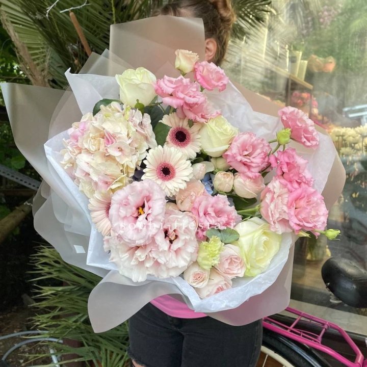 Букеты из эустом, альстромерий, диантусов, хризантем в КраснодареСреднее время сборки: 35-45 минут