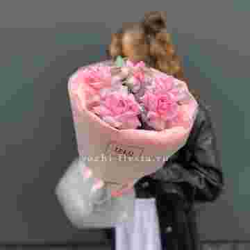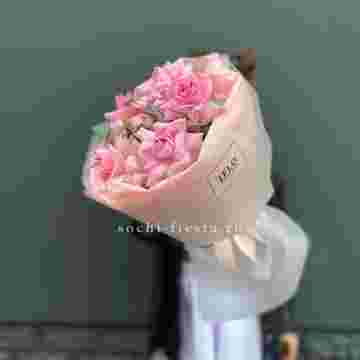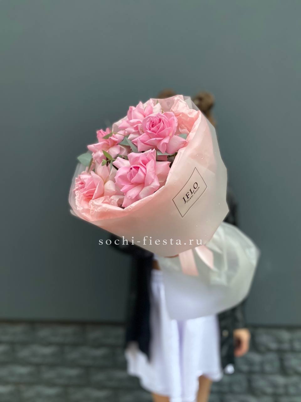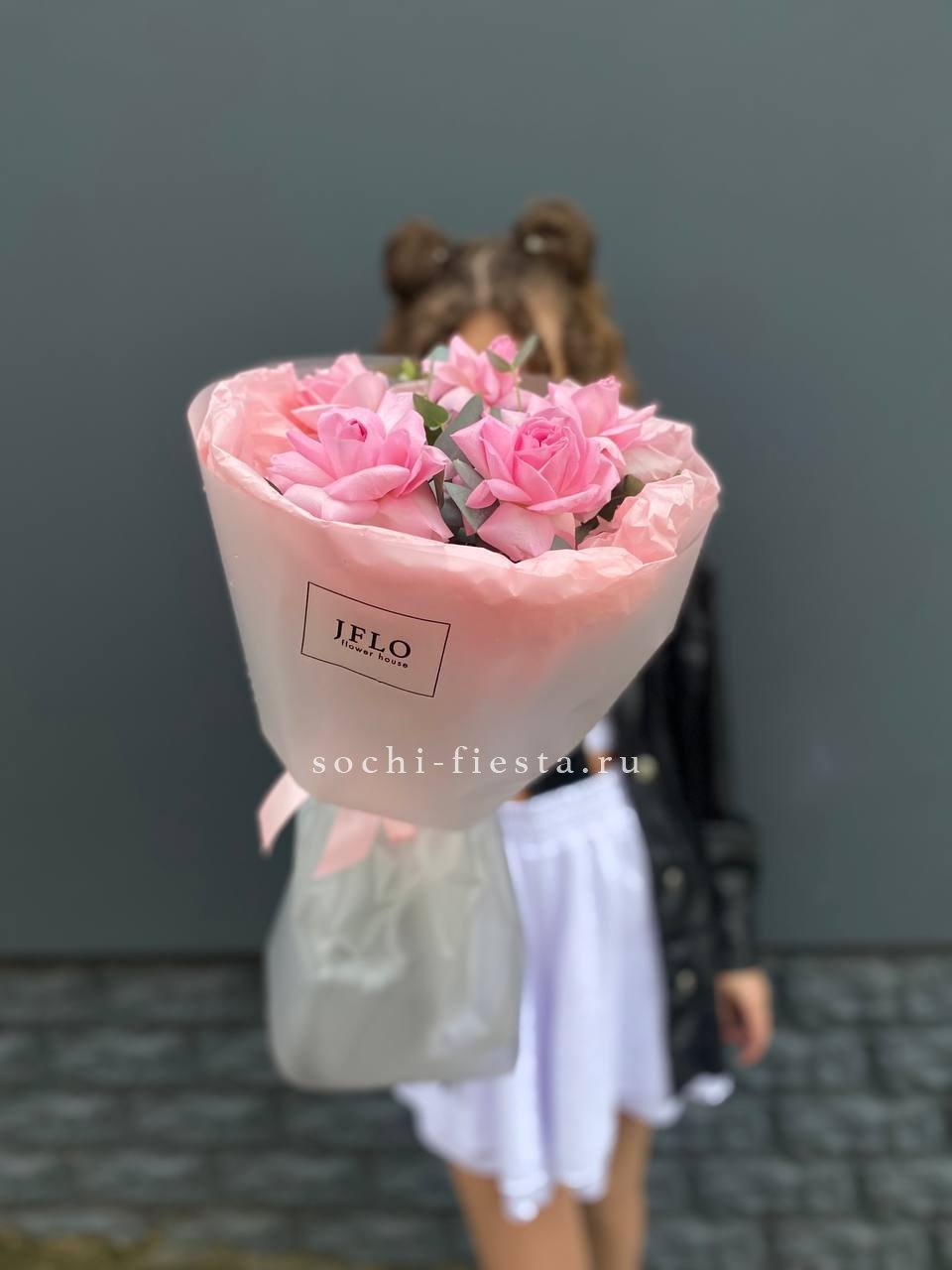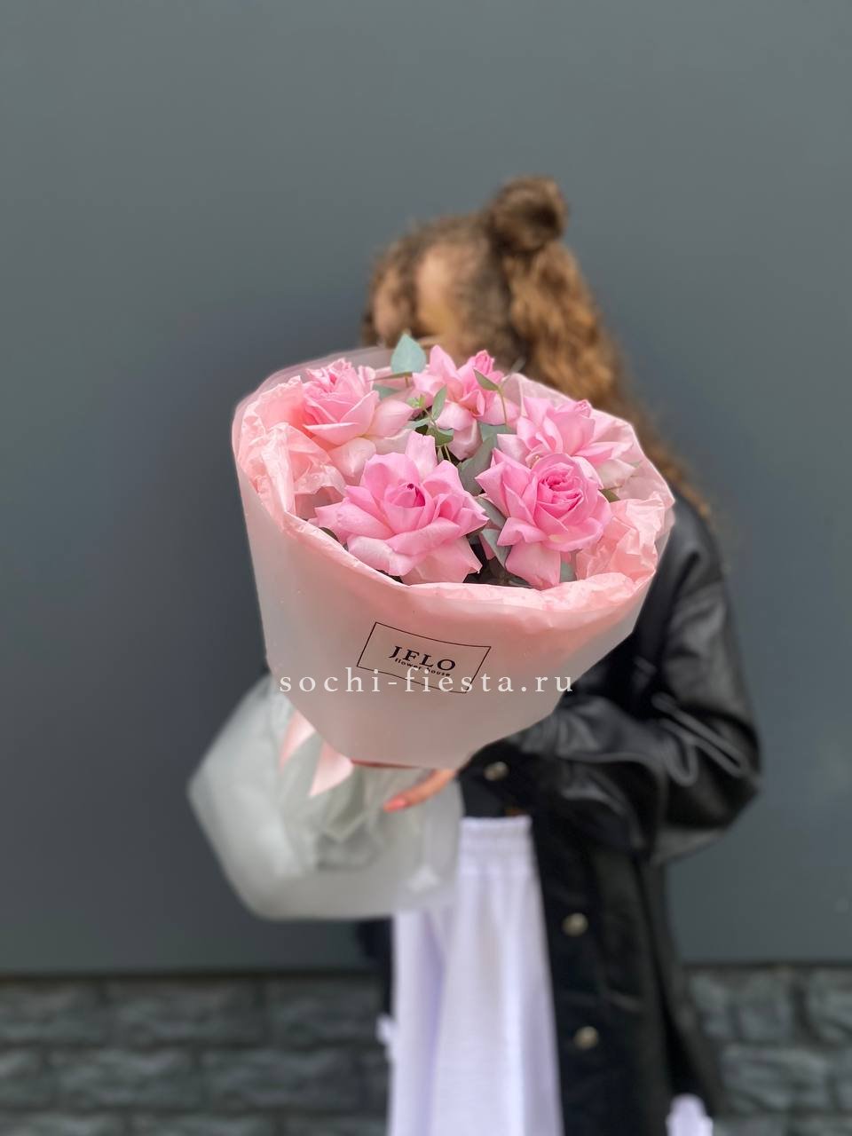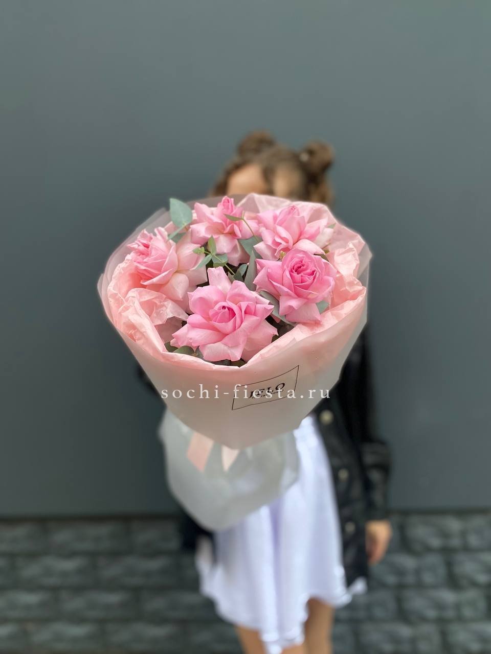 Состав букета на фотографии: вывернутые розы - 5 шт., эвкалипт - 2шт., лента, авторская упаковка