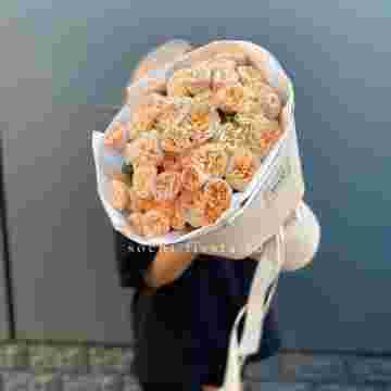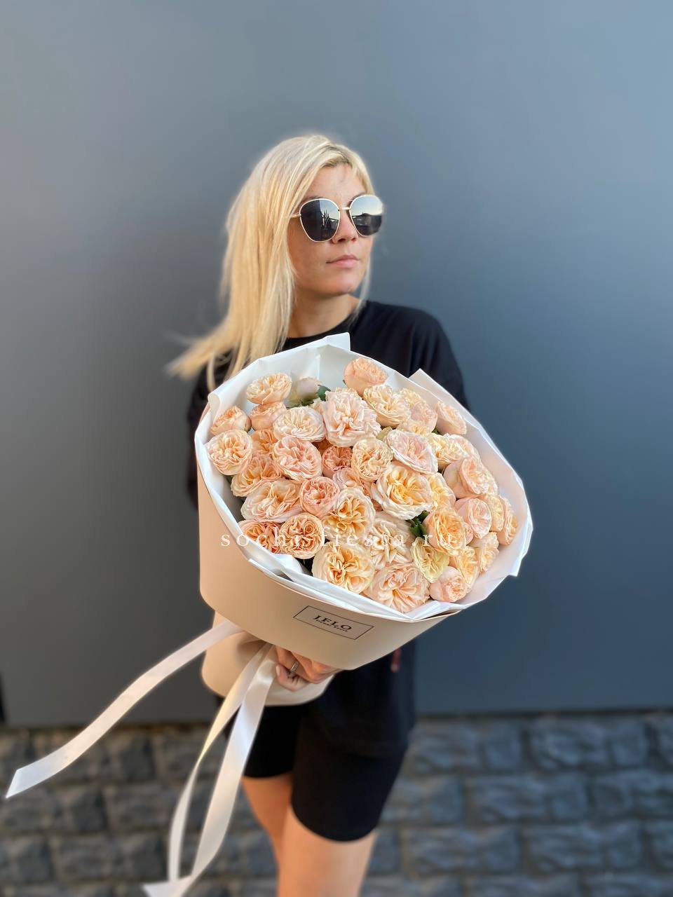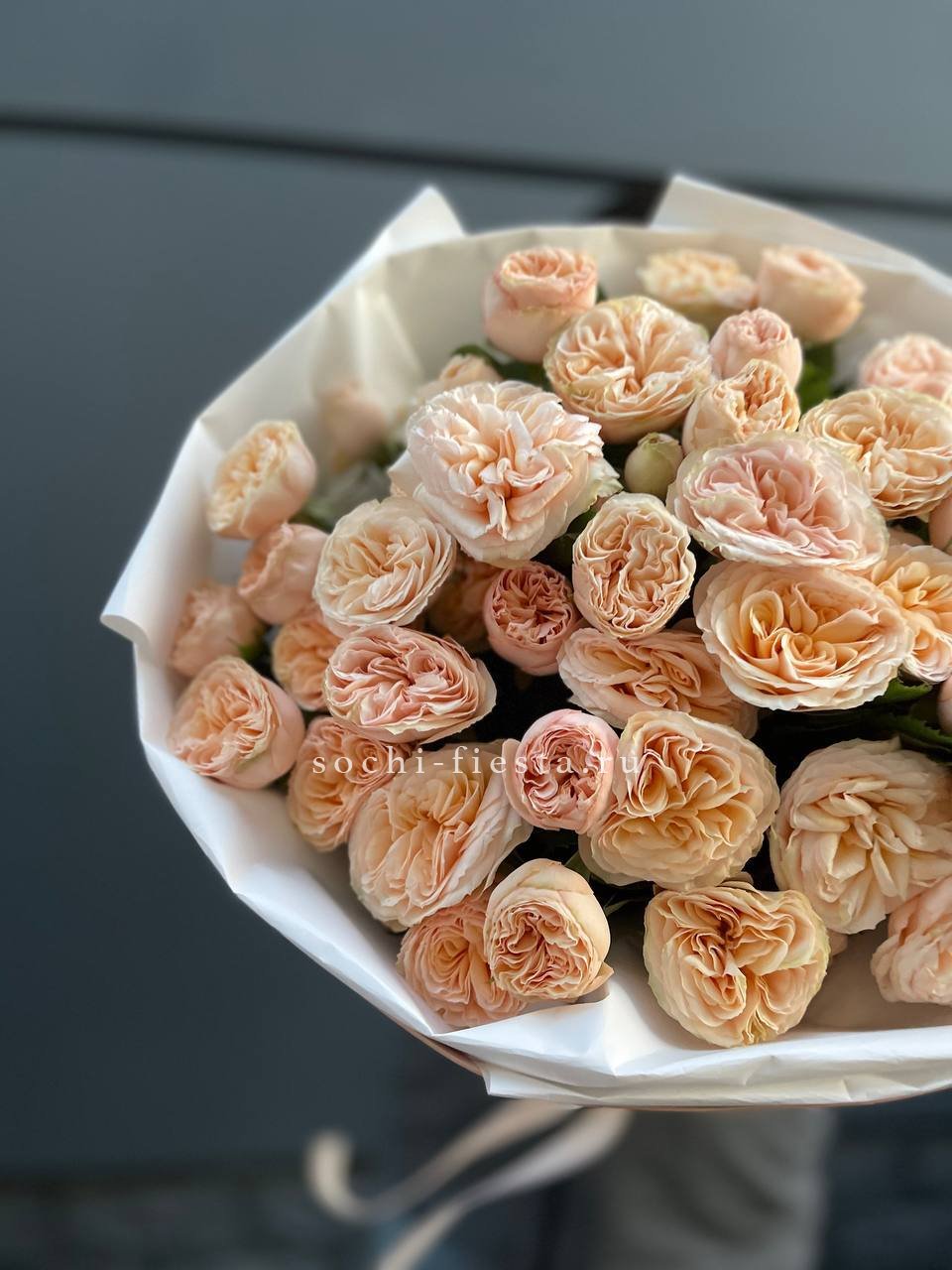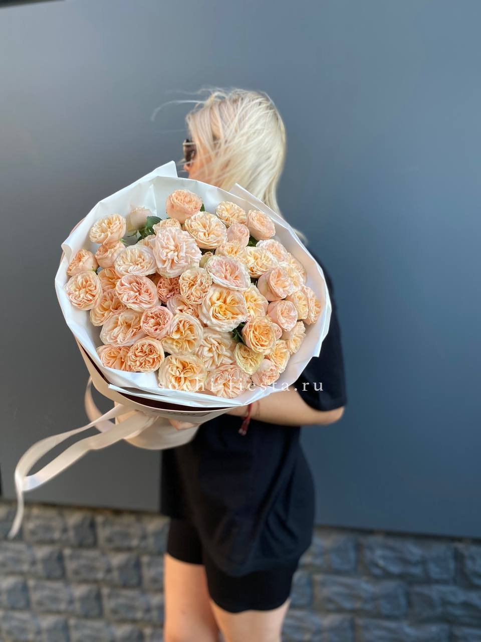 Состав: 15 кустовая пионовидная роза, лента, дизайнерская упаковка